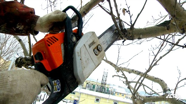 В Южно-Сахалинске приступили расчистке города от зимнего мусора. Пока горожане ждут цветения весны, сотрудники «Зеленого города» вооружаются пилами и садовыми ножницами, и освобождают деревья от сухих веток.