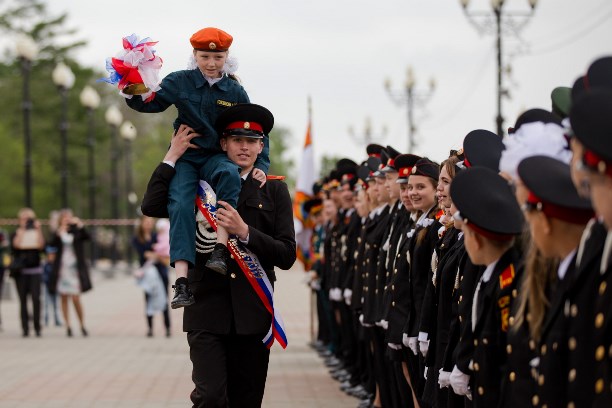 А ученики кадетской школы учебный год традиционно завершили церемонией прощания со знаменем. Она состоялась на площади Славы. В этом году стены образовательного учреждения покидают 28 юношей и девушек. Выпускники кадетской школы, как правило, продолжают обучение в военных вузах и училищах, а также учебных заведениях МЧС России.