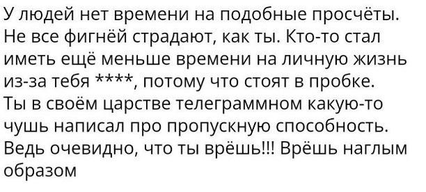 Поводом для поста в его Telegram-канале послужил "забавный комментарий", который Василий Вишневский получил на одном из интернет-ресурсов. Местный житель написал, что "кто-то стал иметь ещё меньше времени на личную жизнь", якобы тратя время в пробках на мини-кольцах. При этом доказать свои наблюдения фактами отказался, поскольку у него нет времени на подобные просчёты. "Не все фигнёй страдают, как ты", - ответил он урбанисту.