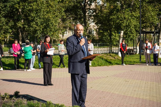 О богатой истории и подвигах великих людей говорили сегодня и в сквере на Комсомольской площади. Здесь установлены памятники основателю города адмиралу Геннадию Ивановичу Невельскому и генерал-губернатору Восточной Сибири Михаилу Семеновичу Корсакову, в честь которого населенный пункт и был назван.