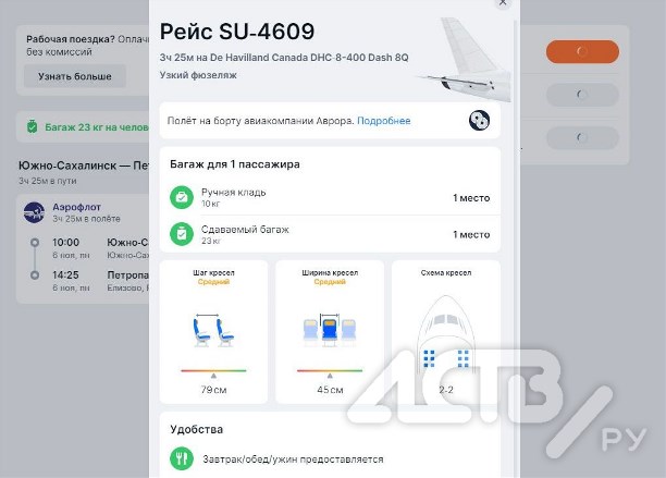 К примеру, рейс HZ-2129 Южно-Сахалинск - Петропавловск на 21 октября будет выполняться на SS-100 "Якутии". Рейс по этому же направлению на 6 ноября SU-4609 будет выполняться уже на DHC-8-400.