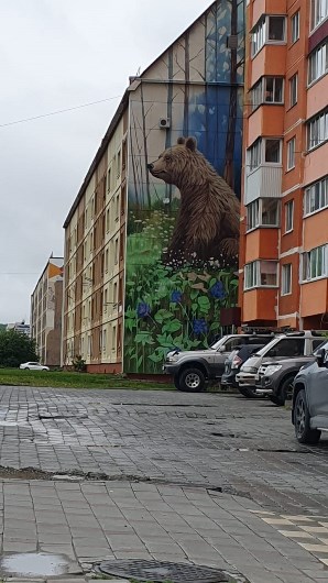 В областном центре в рамках творческого проекта «Взгляды» продолжается работа над художественным оформлением фасадов зданий. Ориентировочно ко Дню города южносахалинские улицы украсят около 50 новых муралов.