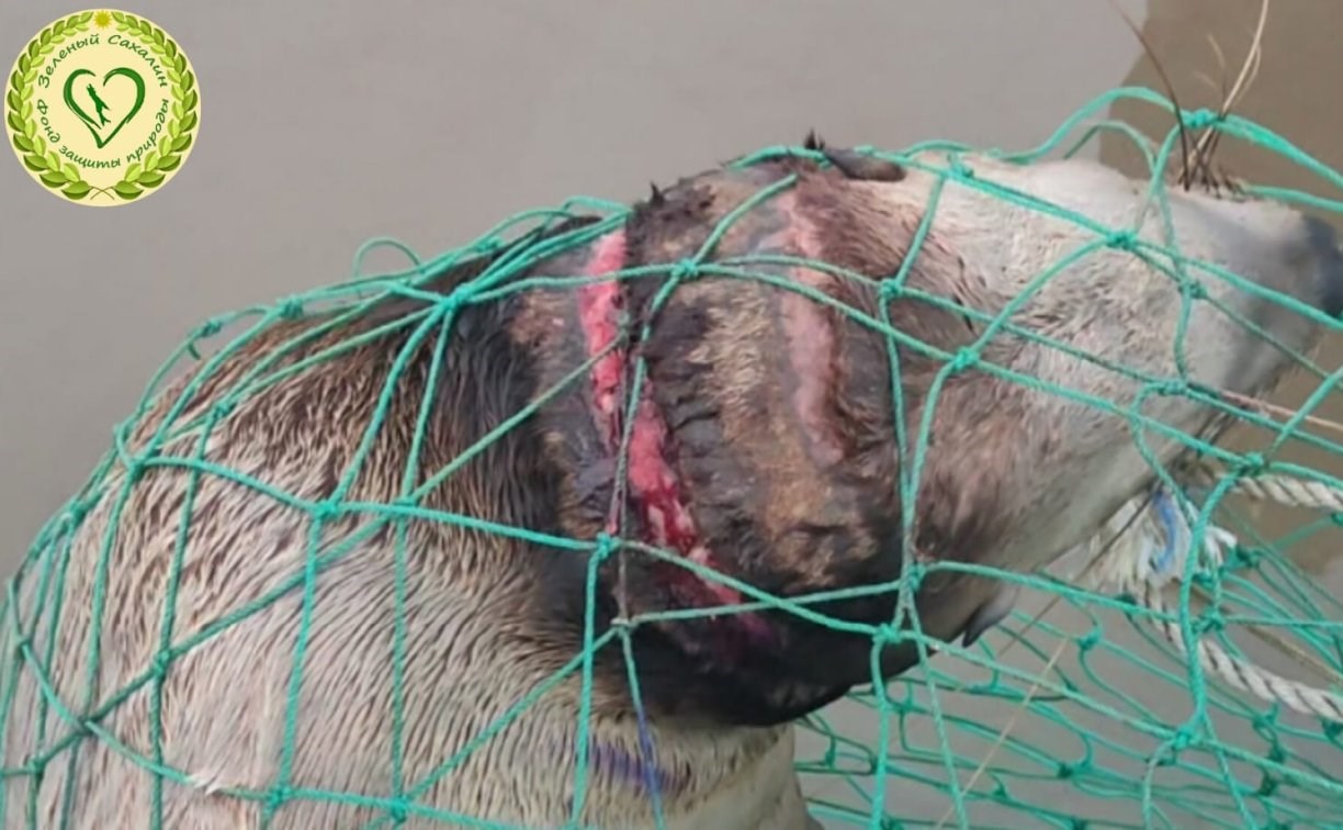 Специалисты фонда "Зелёный Сахалин" нашли умирающего от пластиковой удавки сивуча на охотском побережье Корсаковского района. Ленту удалось снять, однако состояние животного остаётся тяжёлым, рассказали в фонде.