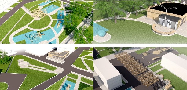 Рядом с библиотекой и детской школой искусств расположится комплексная игровая площадка. Всё это дополнят эргономичными малыми архитектурными формами, зелёными насаждениями и освещением.