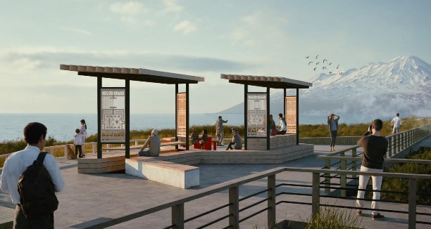 Лестницу дополнят площадками, с которых откроется вид на окружающую город природу и вулкан Менделеева - ту самую "Спящую красавицу". Также благоустройство включает создание зоны отдыха с навесом и качелями, обновление освещения и озеленения, устройство зоны для йоги, воркаута и амфитеатр.