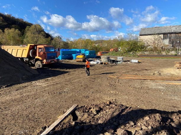 В Вахрушеве продолжается строительство очистных сооружений. В настоящее время подрядная организация уже приступила к возведению стен локальных очистных сооружений. Также строители установили ограждение и выполняют устройство инженерных сетей.