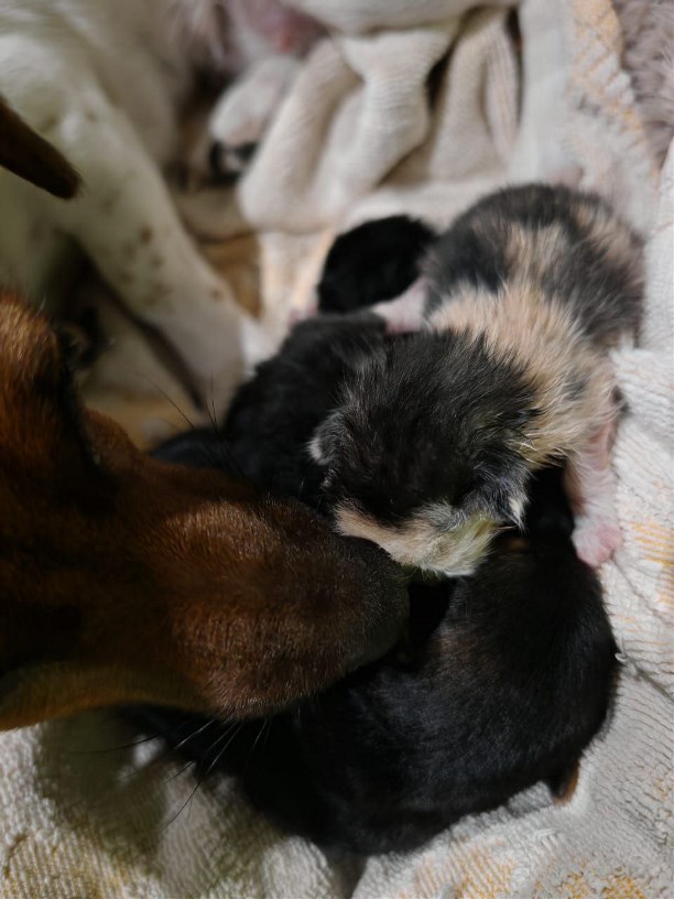 Невероятная история взаимопомощи в мире животных - брошенных на смерть новорожденных котят на Сахалине взялась выкормить собачка, которая недавно стала мамой. Удивительным случаем поделились в Телеграм-канале "Протяни руку лапам. Долинск".