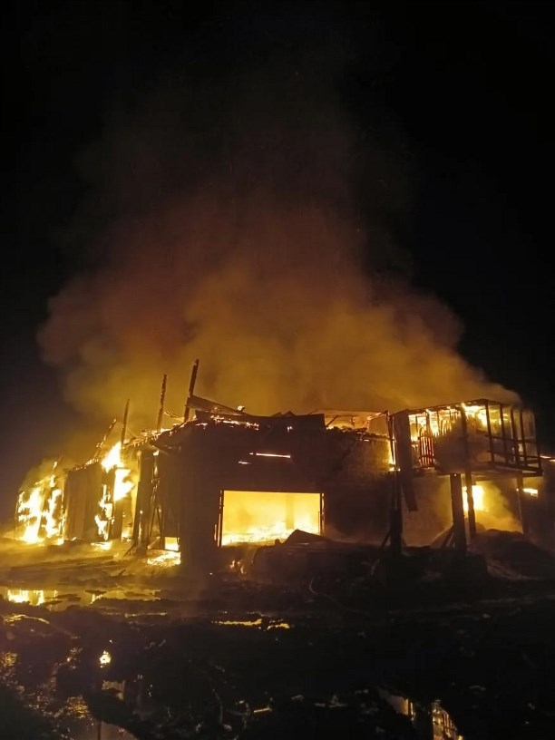 Сообщение о пожаре на улице Вокзальной, 15, поступило в диспетчерскую службу в 02:19. Через 2 минуты работники пожарно-спасательной службы прибыли на место происшествия и приступили к тушению. К этому моменту открытым пламенем изнутри и снаружи горел цех лесопиления. Площадь возгорания составила 1500 кв. метров.