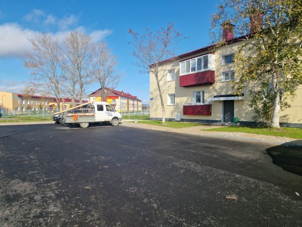 Капремонт дворов в Анивском районе продолжается. К завершению близятся работы в Троицком во дворе домов по ул. Молодежная, 12, 16 и 16А.