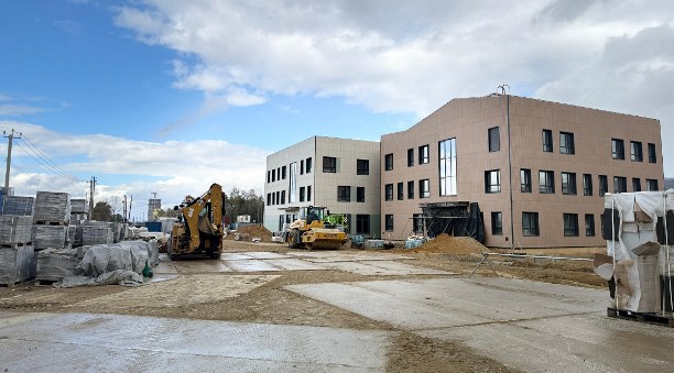 Строительство, начавшееся в апреле 2023 года, находится на завершающей стадии. На сегодняшний день выполнена прокладка всех внутренних и внешних инженерных коммуникаций. В здании ведутся активные отделочные работы на втором и третьем этажах, укладка напольной плитки на лестничных клетках, облицовка стен и монтаж HPL-панелей. Параллельно осуществляется благоустройство прилегающей территории, облицовка фасадов и завершаются пуско-наладочные работы на собственной газовой котельной, которая обеспечит учреждение энергетической независимостью.