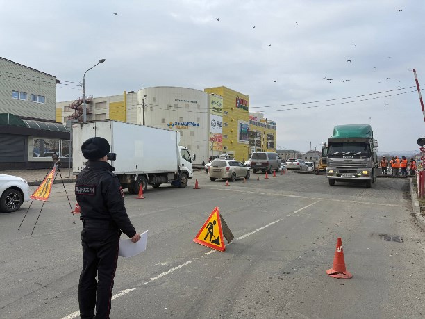 Во время проверки инспекторы зафиксировали нарушения при проведении дорожных работ на участке улицы Сахалинской, где ведётся обслуживание железнодорожного переезда.