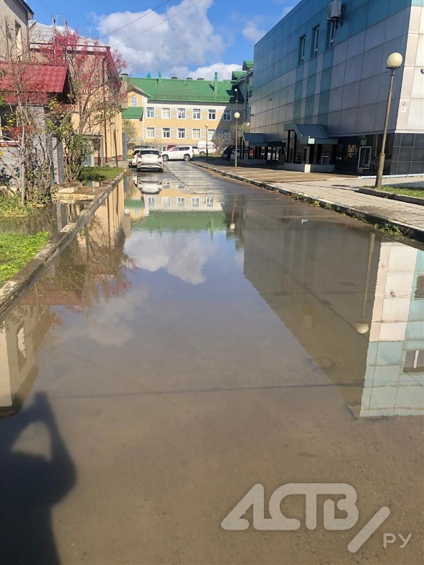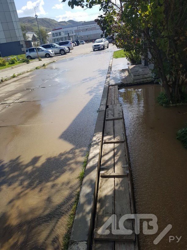 Две улицы в Невельске превратились в водные объекты. Местные жители сообщают, что причина - нарушенное водоотведение.