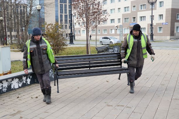 Кроме подготовки к цветению, продолжается плановая уборка общественных пространств. Листья убираются, а скамейки и малые архитектурные формы отправляются на хранение в специальные ангары. Это позволит защитить их от повреждений во время зимней расчистки территорий от снега. При необходимости они будут отремонтированы и покрашены