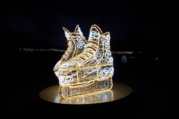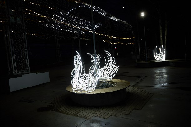 В этом году для посетителей подготовят два катка: малый и большой - на стадионе "Космос". На основной территории продолжается установка светящихся инсталляций и декоративных фигур. Также будет создан ледовый городок, включающий ледовые и снежные композиции.