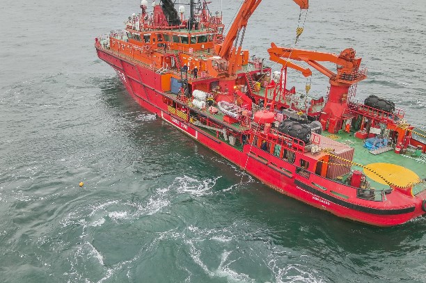 После обнаружения агрегата началась вторая фаза операции - подготовка к подъёму. С помощью манипулятора ТНПА к двигателю прикрепили навигационный буй, после чего в дело вступила команда водолазов. На глубине более 20 метров они закрепили стропы и подали конец троса на поверхность.