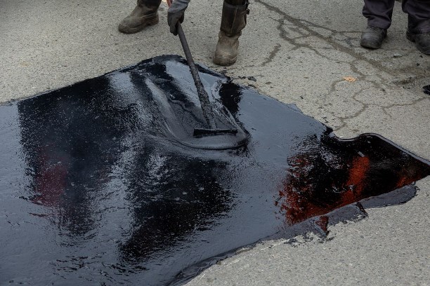 Как рассказал специалист, работы продолжаются литым асфальтом. Производственных мощностей хватает, чтобы производить и использовать до трех тонн асфальтовой смеси за день.