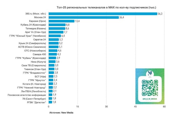 В Топ-25 региональных телеканалов в мессенджере MAX, который был опубликован в Telegram-канале New Media, astv.ru с 5,1 тысячей подписчиков расположился на 10-й строчке, опередив коллег из Новосибирска, Самары и Улан-Удэ. Это единственный ресурс среди СМИ Сахалина, попавший в рейтинг.