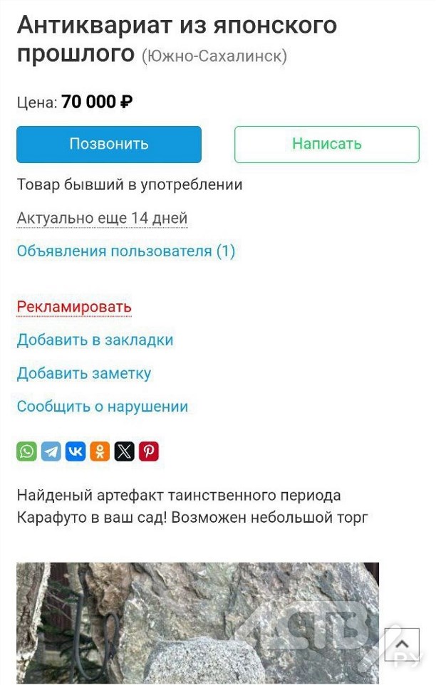 Владелец просит за артефакт 70 тысяч рублей, отметив, что "возможен небольшой торг".