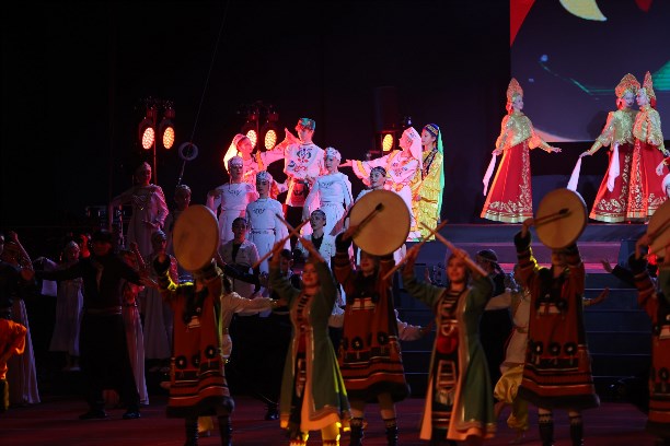 На церемонии открытия манежа для зрителей выступили студенты Сахалинского колледжа искусств, артисты музыкальной академии эстрады, лучшие вокальные и танцевальные коллективы области.