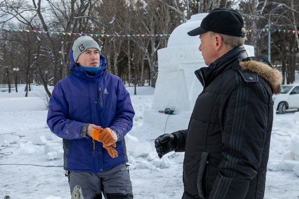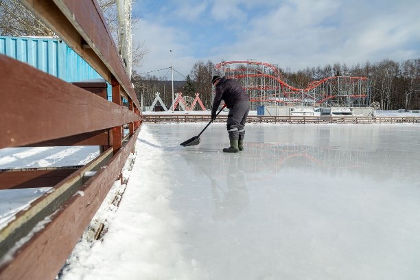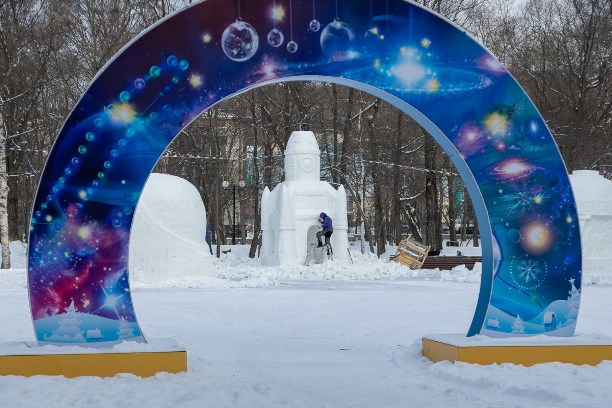 В самом разгаре создание ледового городка на месте роллердрома. Сейчас специалисты работают над снежными фигурами. Для них используется искусственный снег, который отличается большей прочностью. Позже здесь появятся ледовые фигуры и лабиринт. Также на площадке будут установлены различные объекты и фотозоны.