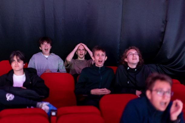 Финал игры идёт на последних раундах. В зале шумно, кто-то вскакивает с мест, кто-то - сжимает кулаки. На сцене - большие экраны, лица игроков напряжены, счёт - на грани. И голос кастера, который ведёт матч так, будто это решающий момент большого спортивного дерби.