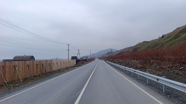 В Поронайском районе капитально отремонтировали около 1,5 км региональной автодороги между селами Лермонтовка и Вахрушев. На участке с 4 по 5 км уложили новое асфальтобетонное покрытие, обустроили остановочные пункты с заездными карманами и автопавильонами, установили перильное ограждение и дорожные знаки, выполнили переустройство наружного освещения и благоустройство прилегающей зоны, нанесли дорожную разметку.