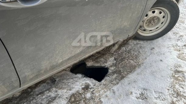 Жители областного центра прислали в редакцию astv.ru фотографию провала в земле, который может привести к аварии.