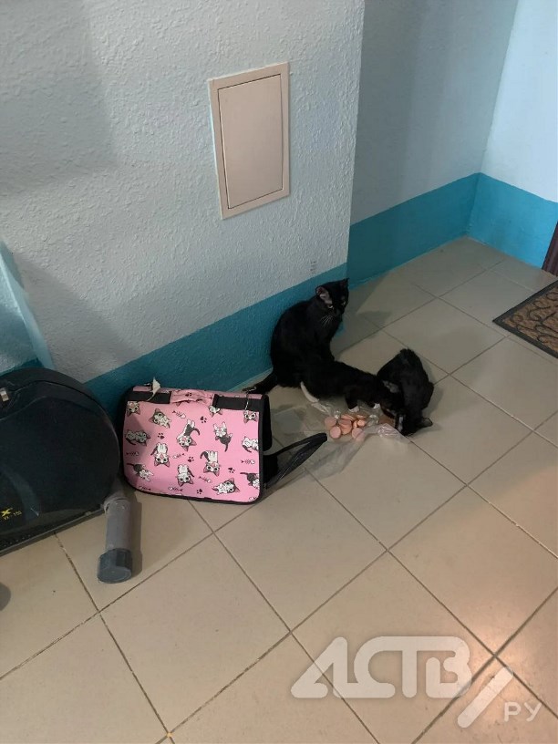 "Судя по записям с камер, парень и девушка приехали к дому на машине Toyota Corolla Axio. Возможно, на такси. Зашли в подъезд и просто бросили переноску с кошкой и двумя котятами под дверь. Животные так и просидели в сумке до утра. Так делать нельзя", - отметил читатель.