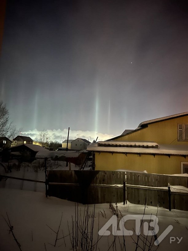 Так, световые столбы заметили в ночь на 25 января в Луговом.