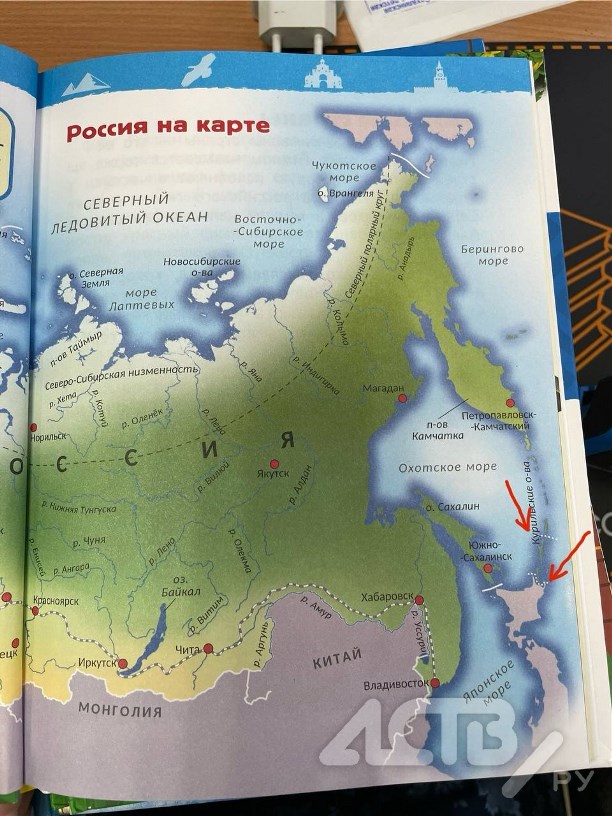 Сахалинка нашла в детской энциклопедии карту с "провокационными" пунктирами на Курилах