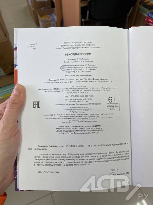 Читательница astv.ru рассказала, что сначала определённые вопросы вызвала карта России, изображённая на энциклопедии для детского сада "Наша Родина - Россия" от издательства "РОСМЭН".