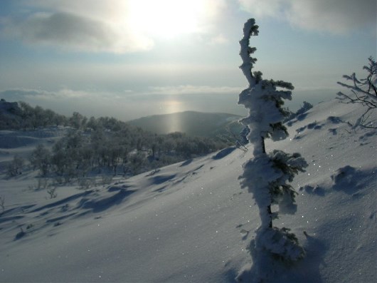 Слава Эгле снял на "Горном воздухе" видео, которое завирусилось в сети. На кадры попал необычный светящийся столб из "алмазной пыли", возникший внезапно над горнолыжной трассой "Юг".