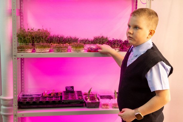 Этот принцип равенства возможностей реализуется в школе №32 буквально с первых классов, что подтвердила презентация третьеклассника Дмитрия Озолина, который представил технологию выращивания микрозелени на фитостеллажах. Здесь школьники не только получают горох, редис и кресс-салат, обогащая их минералами, но и проводят дегустации для популяризации здорового питания.