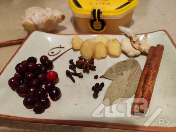 Не совсем понятно, откуда такое роскошество было на Руси, ну да ладно. Мы тоже добавили, получился оттенок медового глинтвейна.