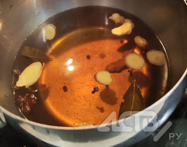Итак, в первой кастрюле кипятим воду, добавляем пряности, томим на медленном огне 10 минут. Затем добавляем зверобой и мяту, лавровый лист, несколько горошин черного перца, настаиваем еще 10 минут, не доводя до кипения.