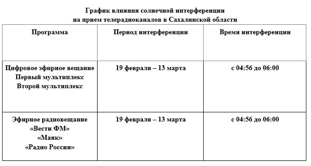 С 19 февраля по 13 марта в небе над Сахалинской областью будет наблюдаться интерференция. Это явление, при котором радиоволны Солнца могут перебивать телерадиосигнал, предупредили в Сахалинском областном радиотелевизионным передающем центре.