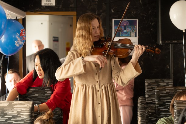 Инструментальные виртуозы Катарина Сакс (саксофон) и Мария Герасименко (скрипка) добавили глубины и торжественности звучанию. А энергичные выступления шоу-балета "Арт Денс Ледиес" в составе Анны Пидварко и Полины Репиной подарили празднику динамики и радости, вовлекая пассажиров в атмосферу всеобщего веселья.