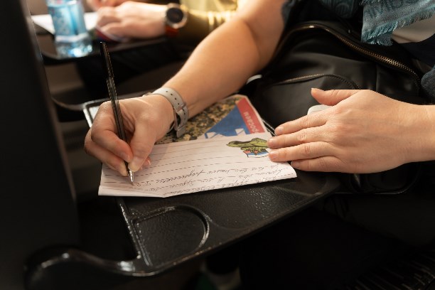 Особым моментом программы стало предложение каждому пассажиру написать "Письмо солдату". Под нежное звучание скрипки люди могли выразить свои слова благодарности, поддержки и пожелания тем, кто сегодня несет службу, оберегая мир и безопасность нашей Родины. Эти письма стали символом единения и признательности, передавая тепло и заботу всем, кто находится вдали от дома.