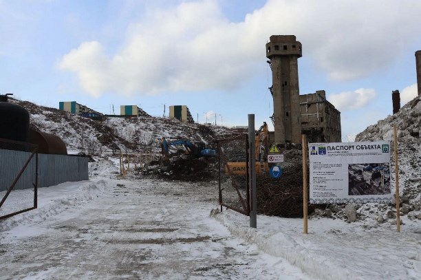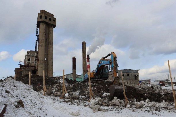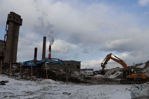 В Холмске начался демонтаж здания бывшего целлюлозно-бумажного завода.