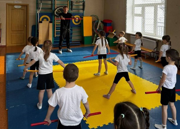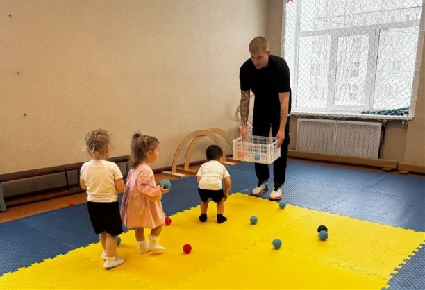 Также уже несколько лет будни Владислава начинается в детском саду. Здесь он работает с самыми маленькими сельчанами: проводит зарядку и знакомит их с основами физкультуры.