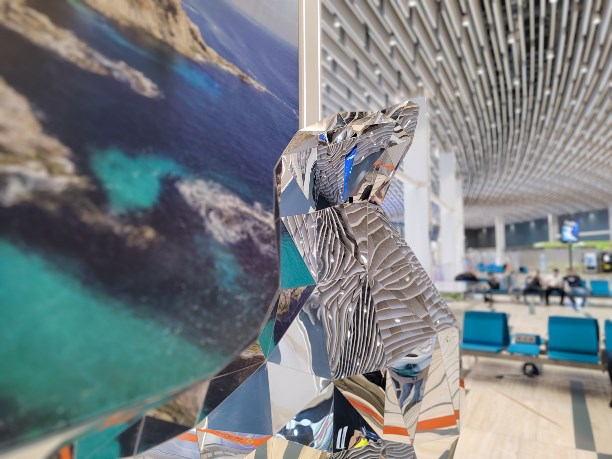 Сейчас арт-объект стоит на втором этаже и провожает гостей перед вылетом.