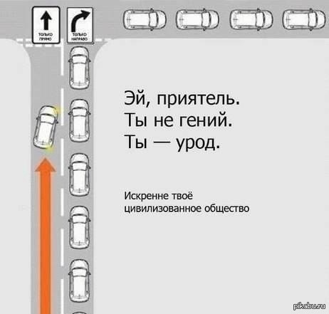 Дальше тех кто очень торопится видать на горшок или пожар, где полоса " поворот на право" они продолжают ехать прямо!
