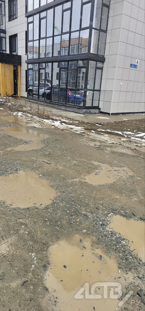 "Когда мы заселились, застройщик нам пообещал асфальт и освещение. В результате дороги так и нет. Из УК нам писали, что она к ним не относится, а в администрации говорили, что на баланс дорогу не приняли. Жильцы сидят и ждут, когда тронется лёд. Вечером темно и очень грязно, главная дорога тоже без асфальта, вся глина тянется во двор.
