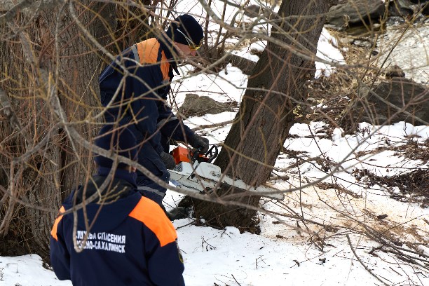 Масштабная работа организована сотрудниками управления по делам ГО и ЧС Южно-Сахалинска, а также специалистами МБУ "Зеленый город". Предварительно они провели тщательное обследование русла реки, выявили деревья, препятствующие течению и представляющие потенциальную опасность в период паводков.