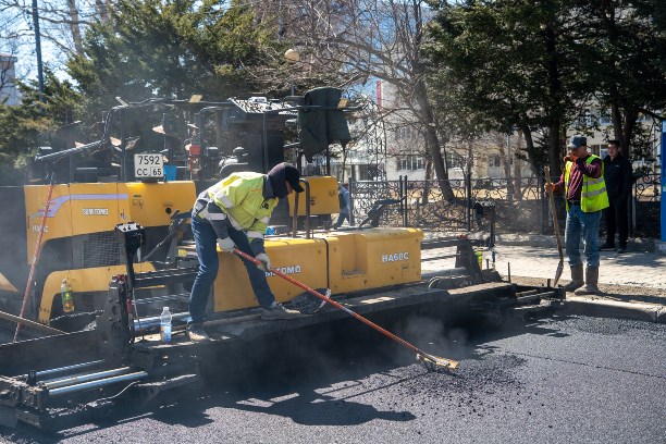 В областном центре активная пора у дорожных служб: подрядчики ведут работы по обновлению покрытия в центральной части Южно-Сахалинска. Так, с начала недели дорожные строители устраняют дефекты на улице Дзержинского, рассказали в администрации города.