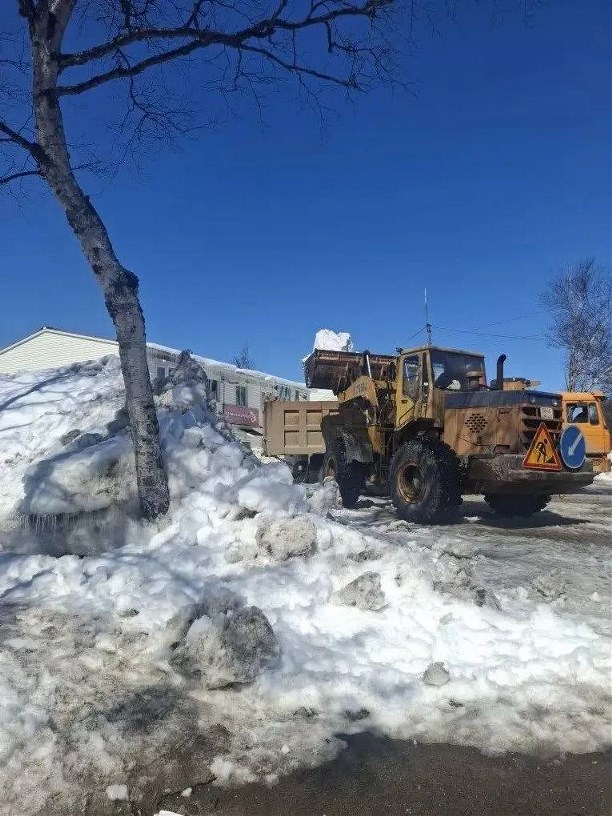 В самом северном райцентре Сахалина продолжаются работы по расчистке улично-дорожной сети после зимних снегопадов.