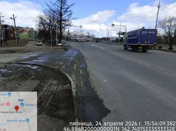 На участке улицы Ивана Куропатко, ведущей к аэропорту областного центра, зафиксировали вынос грязи со стройплощадки, где возводят новую поликлинику. Собственник автодороги ГКУ "Управление Сахалинавтодор" поручил обслуживающей организации провести полный комплекс работ по очистке проезжей части.