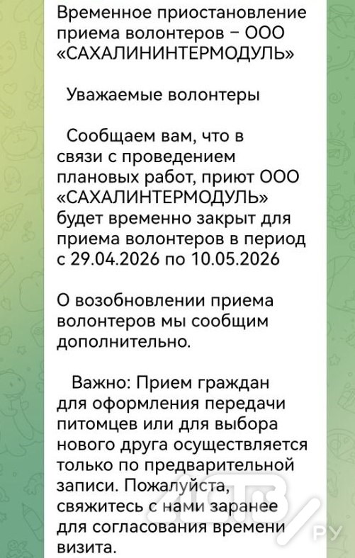 Напомним, 1 апреля после жалоб волонтеров в приюте для животных ООО "Сахалининтермодуль", расположенном в селе Мицулевка, прошла выездная проверка. В правительстве региона тогда сообщили, что "в ходе проверки доводы о ненадлежащем уходе за животными ветеринарным врачом не подтвердились".