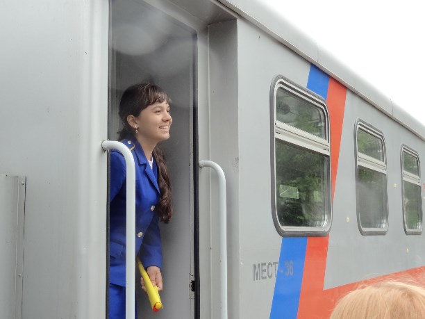 А в конце поездки ребят ждали небольшие призы за правильные ответы. Кстати, по традиции поезд обслуживали дети. И даже в кабине машиниста сидел бывший воспитанник детской железной дороги – Николай Кравцов. Говорит, сюда ребенком приходила и его бабушка – работала кондуктором.