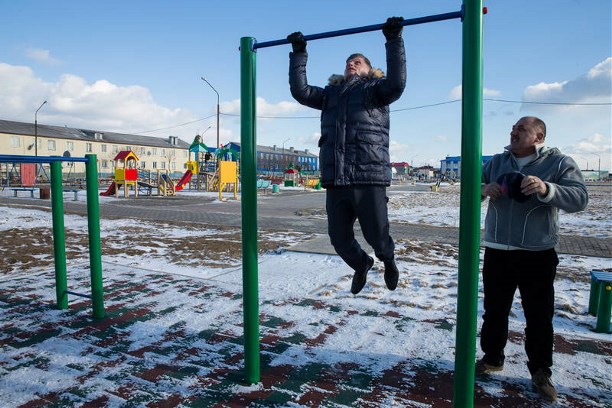 О здоровье курильчан, впрочем, уже позаботились – рядом с центральной площадью – новенький спортгородок – детские горки, тренажеры перекладины.